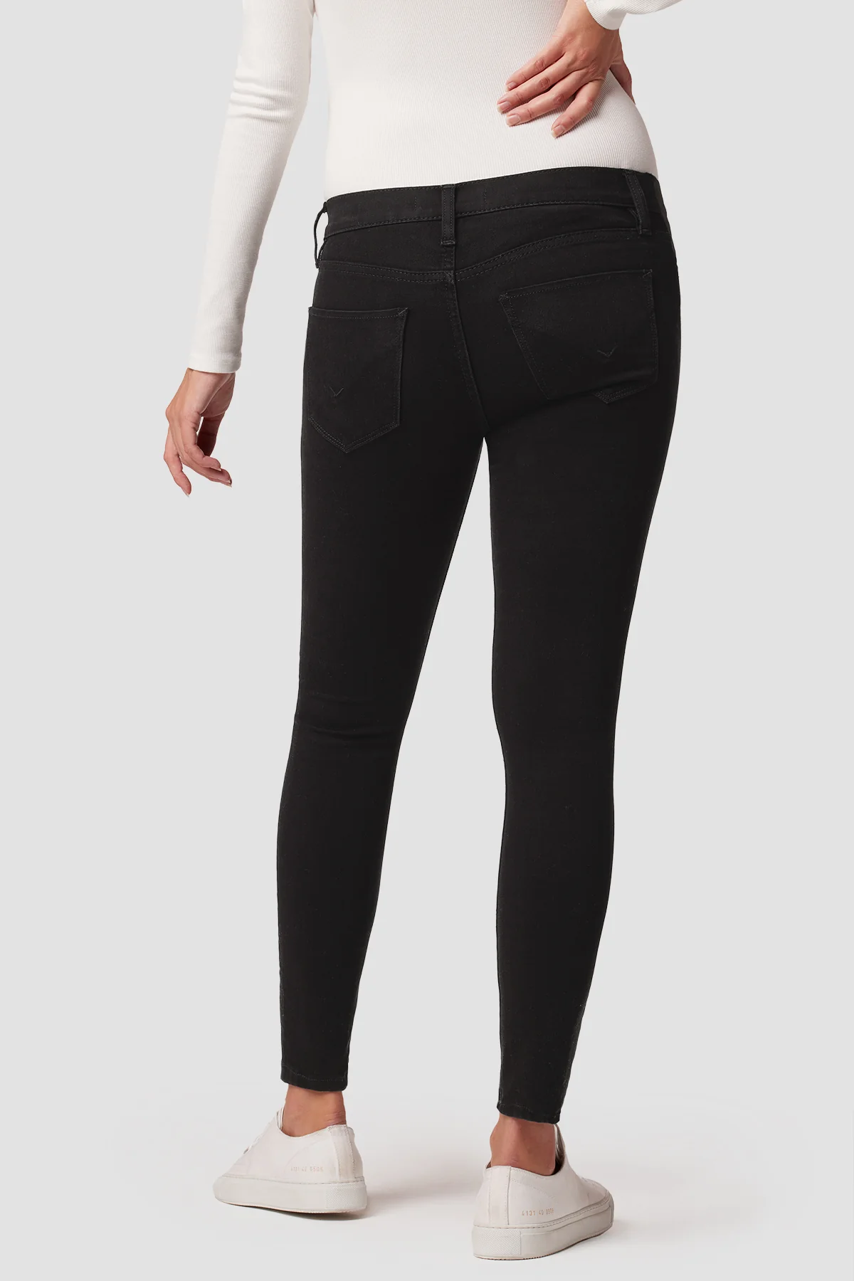 Designed with elastic panels for added comfort and support, our Nico Maternity Super Skinny Ankle Jean is cut for a streamlined fit with premium stretch denim in the Black wash.